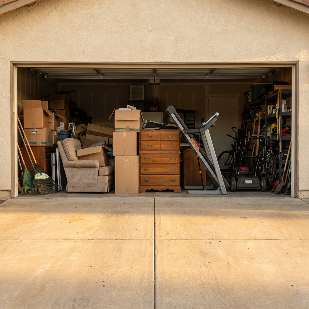 If your garage hasn't actually held a car in years, you're in good company. In Santee — where the average home was built in the mid-1970s and many households have been in place for a decade or more — garages tend to become the default storage unit for everything that doesn't have a home anywhere else. Old furniture from the last remodel. A treadmill that hasn't moved since 2019. Boxes from a move you still haven't fully unpacked in Carlton Hills or Woodglen Vista.